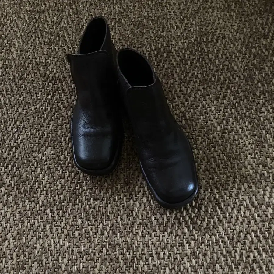 SAYA 블랙 가죽 사이드 고어 부츠,