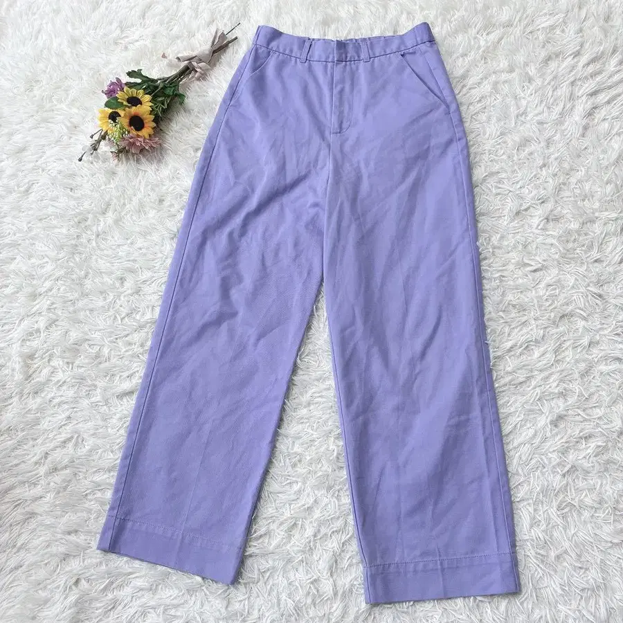 라벤더 색상의 코튼 혼합 와이드 팬츠! 사이드 포켓이 있어 사용하기 편리합니다(^^ ♪