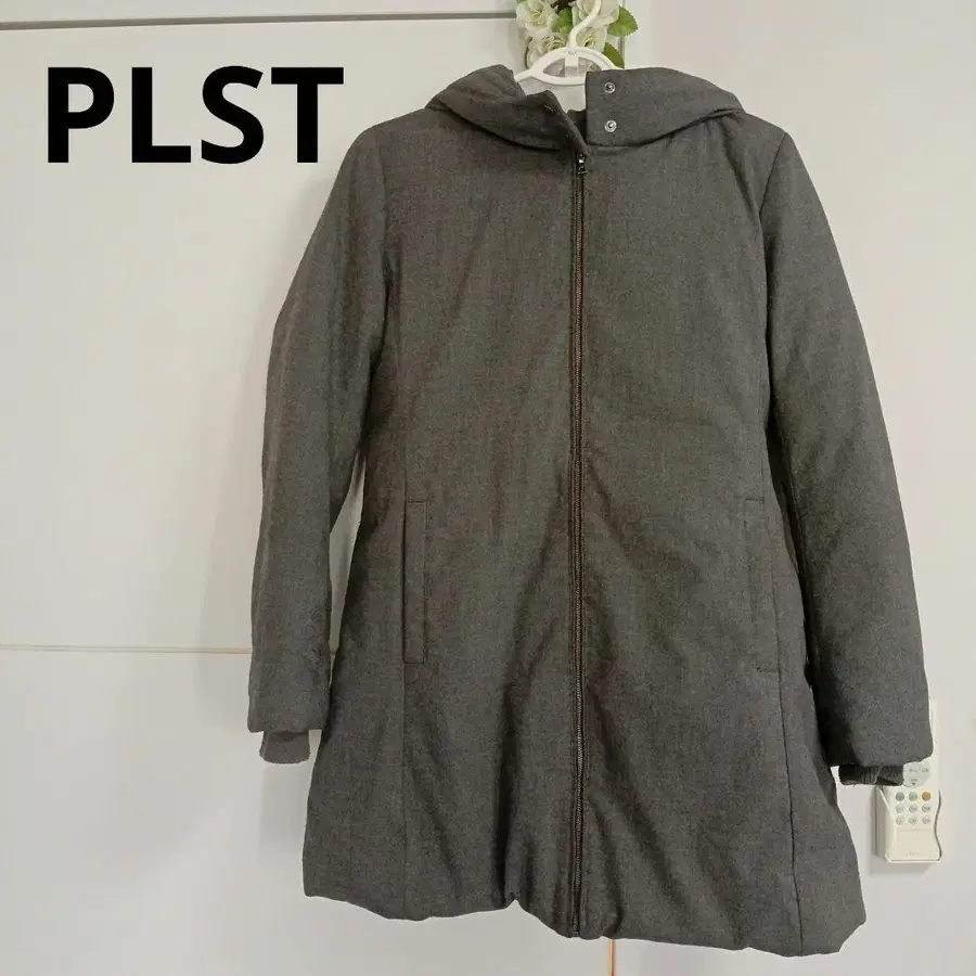 PLST 후드 부착 그레이 다운 자켓 플라스테 M A라인