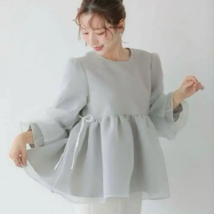 크링클 시어 오간자 볼륨 슬리브 상의 fitmore