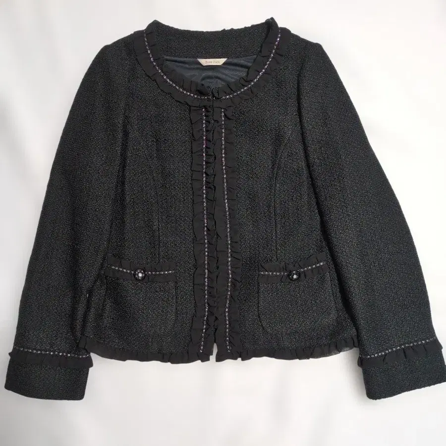 새상품급 로즈 티아라 빅 사이즈 노카라 트위드 자켓 블랙 46