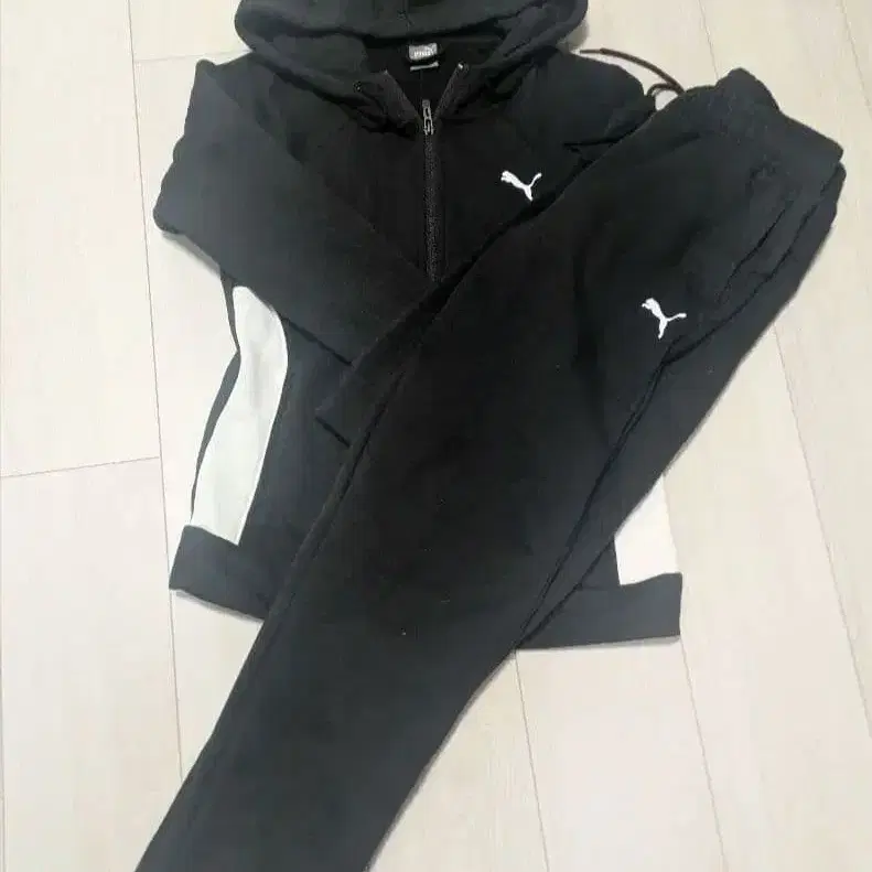 Puma 블랙 후드 부착 셋업 맨투맨 속기모 블랙M