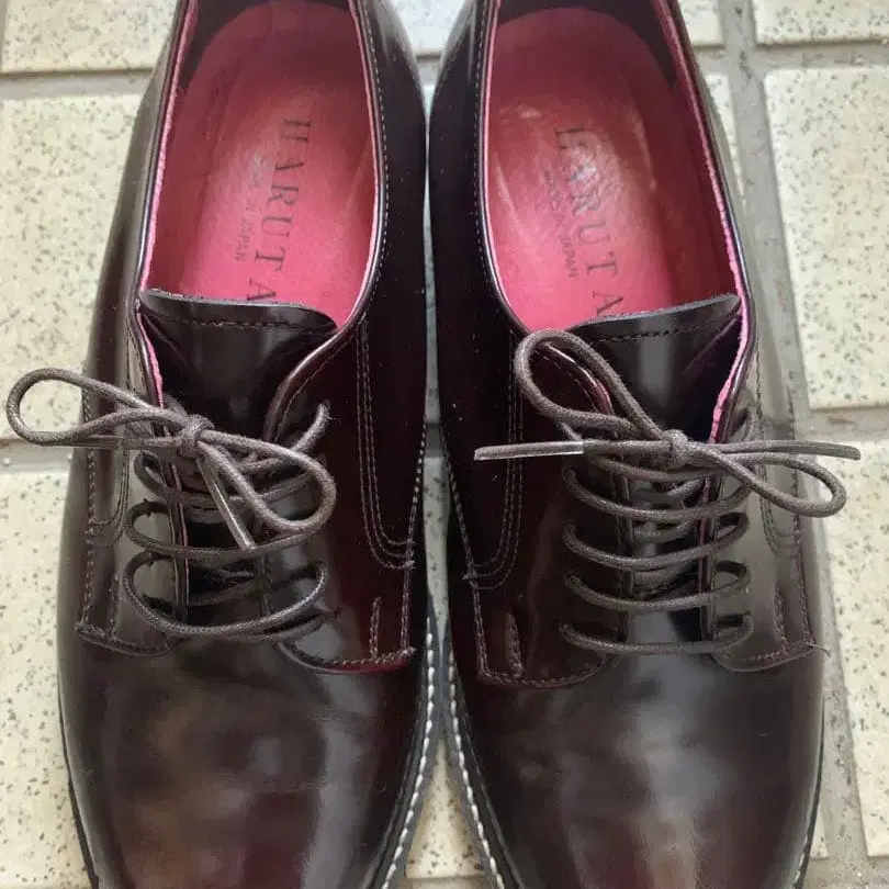 24.5cm HARUTA 에나멜 드레스 레이스 가죽 신발 다크 브라운