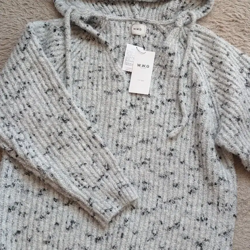 W.W.G 후드 부착 리브 니트 스웨터 그레이