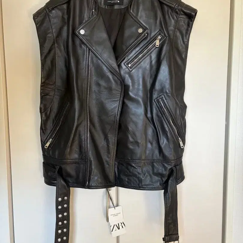 ZARA 천연 가죽 블랙 라이더 베스트 자켓 XS-S