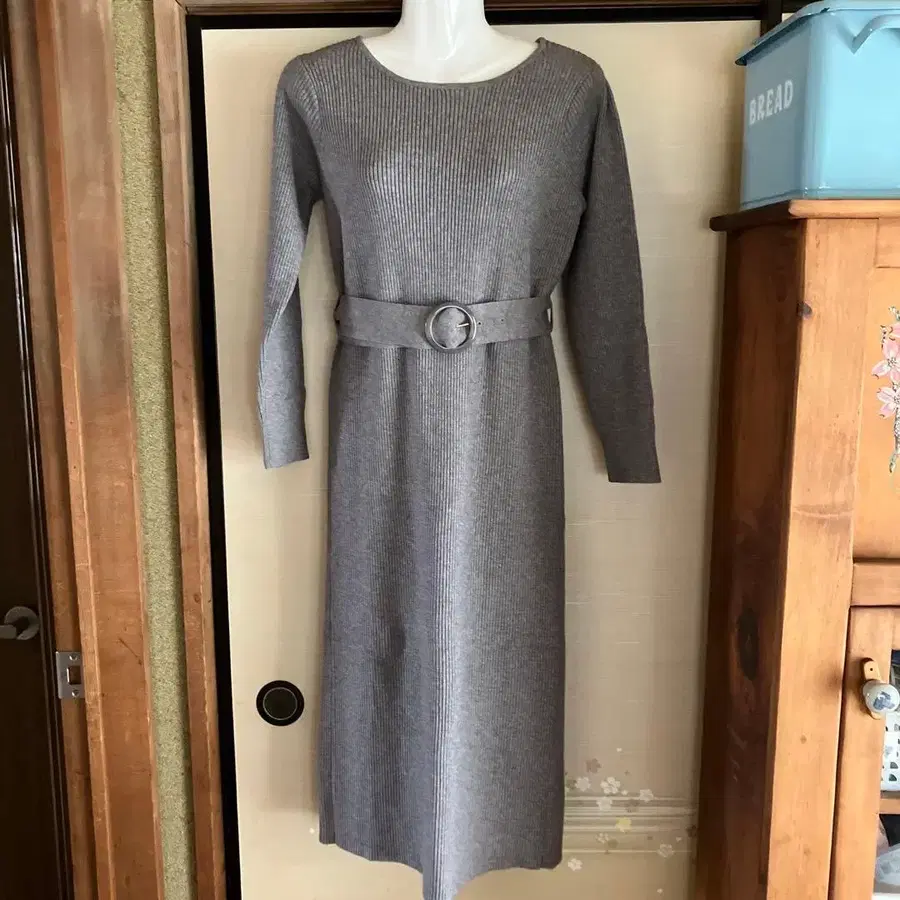 프로포션 바디 드레싱 그레이 니트 롱 원피스 벨트 포함