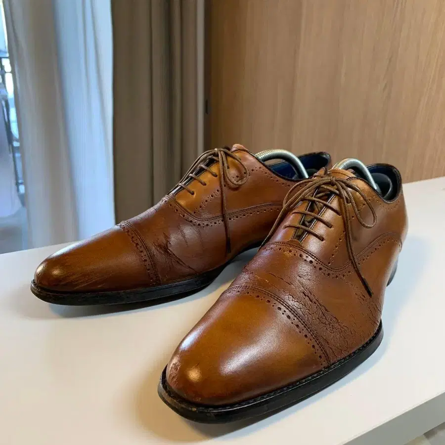 REGAL 브라운 가죽 캡토 드레스 슈즈