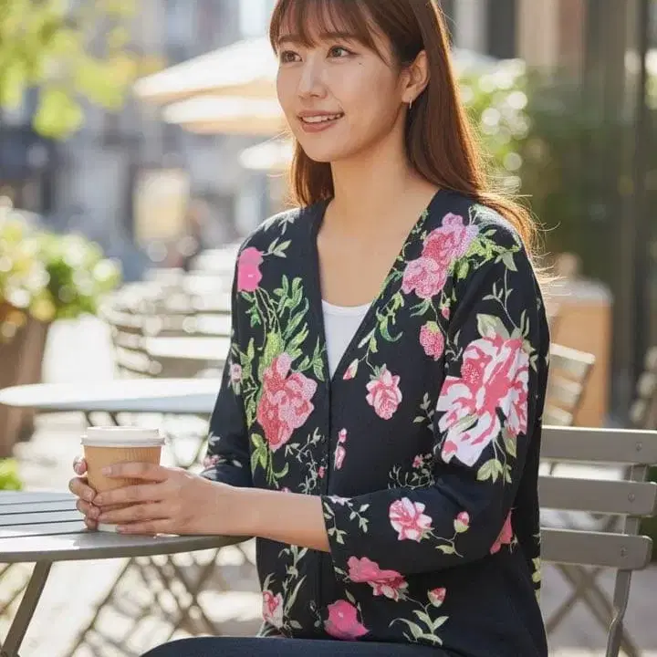 플라워 비즈 자수 블랙 꽃무늬 가디건