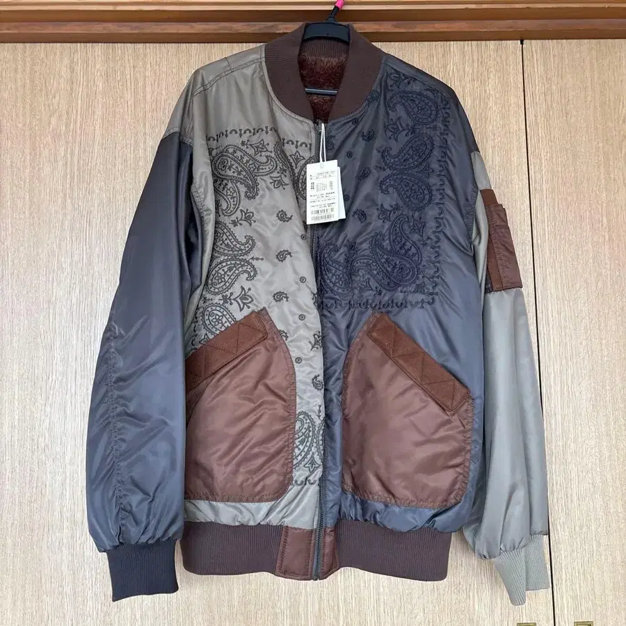 CUBE SUGAR 자수 디자인 점퍼 M 사이즈 그레이/브라운