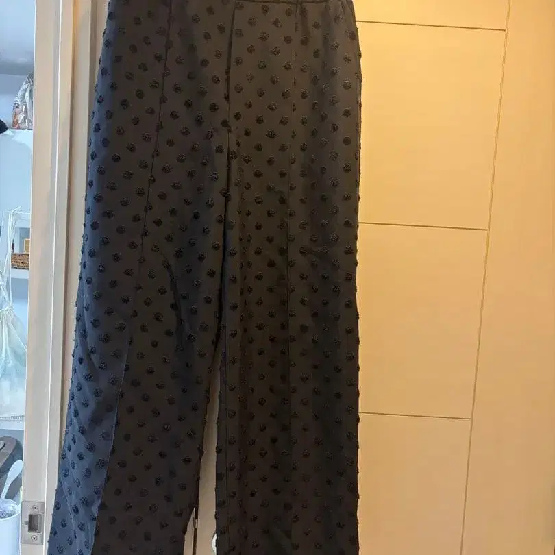 Gready Brilliant 도트 무늬 블랙 플로키 자카드 팬츠