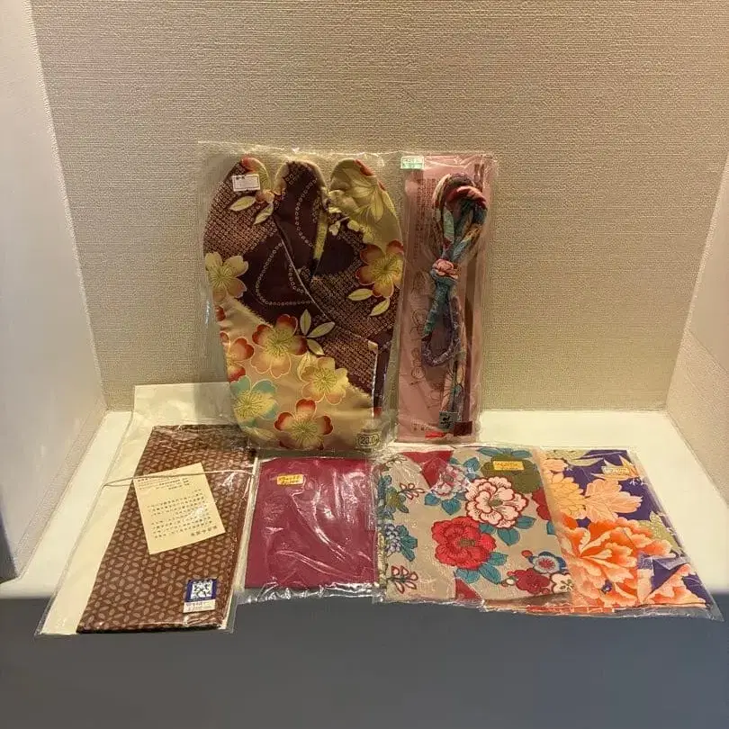 기모노용 타비와 기모노 원단 조각, 손수건 등의 세트