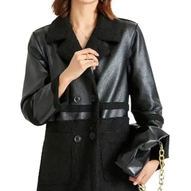 PU 가죽 보아 절개 자켓 긴팔 버튼 캐주얼 코트