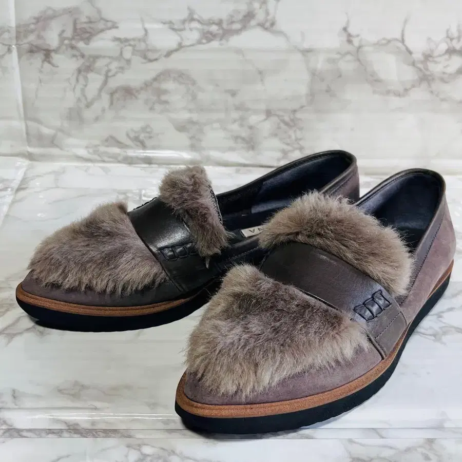 자동 번역되었어요. 원문보기[ 다이애나 ] 퍼가 달린 브라운 계열 플랫슈즈, 캐주얼 스타일에 최적.