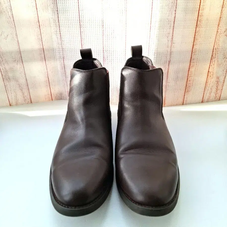브라운 가죽 사이드 고어 부츠 첼시 부츠