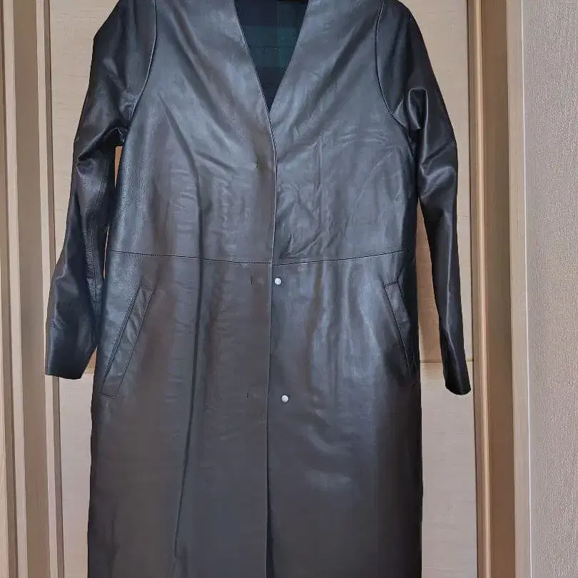 리비 루카 블랙 가죽 롱 코트 메리노 램스울 안감
