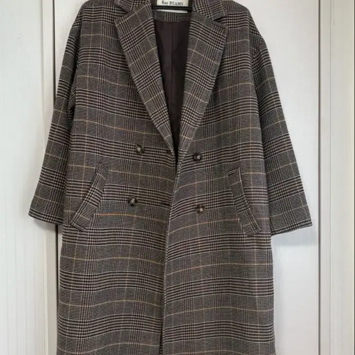 Ray BEAMS 체크 무늬 더블 브레스트 체스터 코트