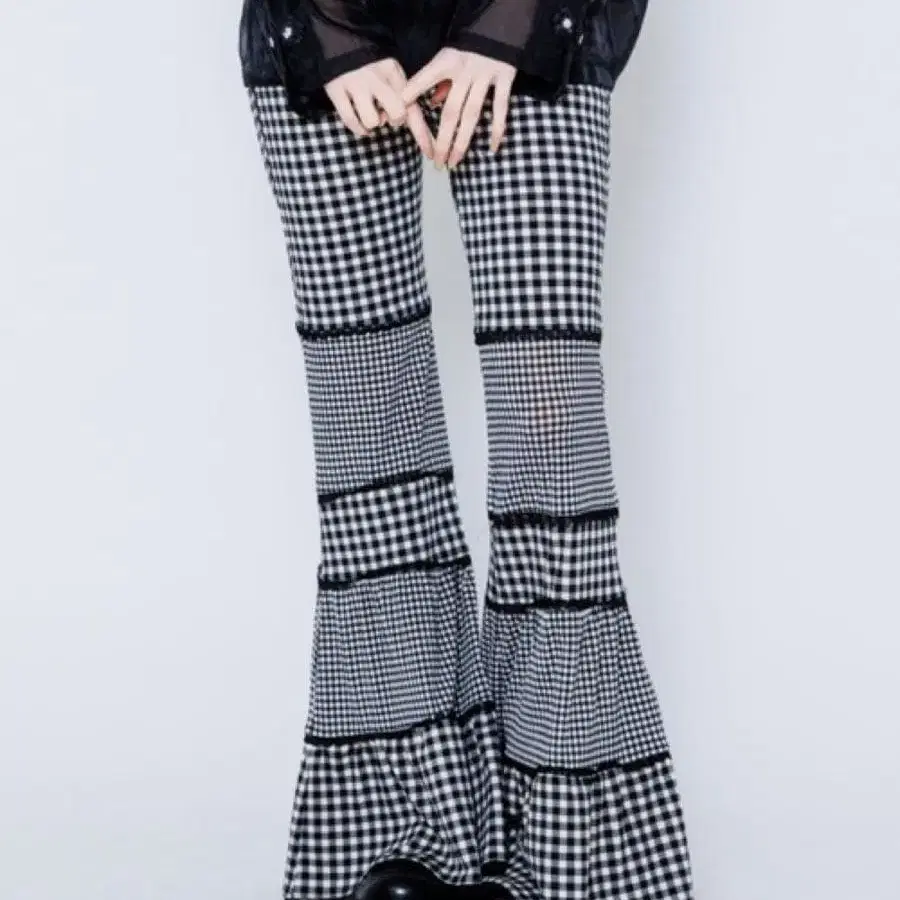 Candy stripper 깅엄 체크 플레어 팬츠 블랙