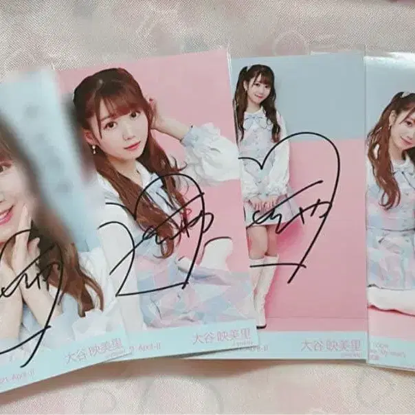 이코라부 오타니 에미리 체크 의상 마카롱 의상 친필 브로마이드 컴프