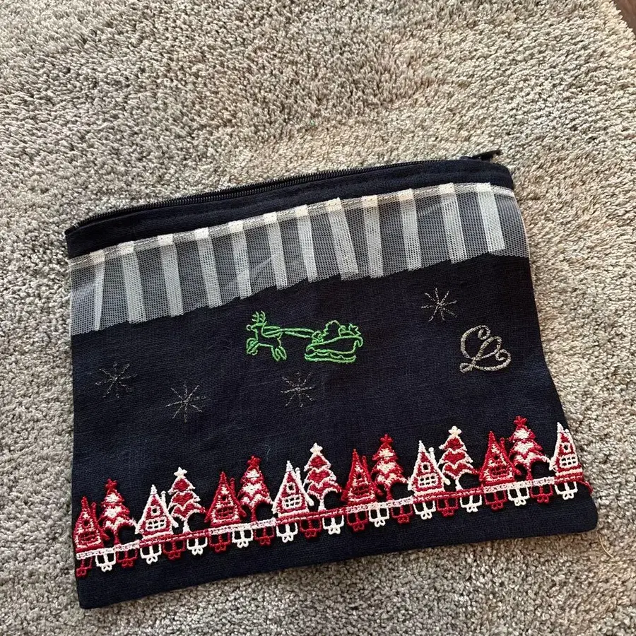 크리스마스 자수 네이비 파우치 긴자와 레이스