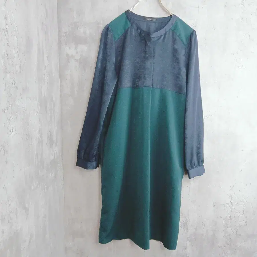 [ 어반리서치 로쏘 ] 네이비, 그린 배색 롱 원피스 긴팔 바이컬러