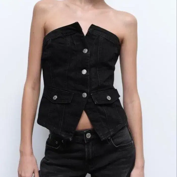 ZARA 새상품 완판 TRF 스트랩리스 데님 상의 XS 택 포함