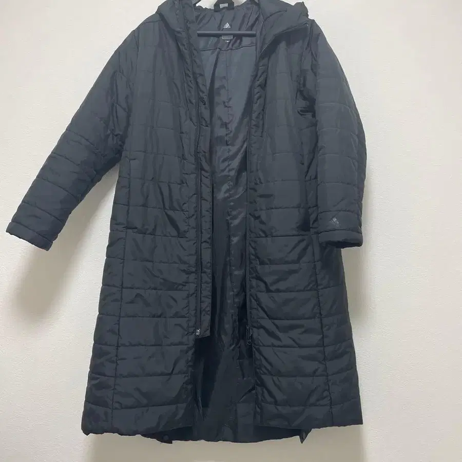(새상품급) 아디다스 블랙 후드 부착 롱 벤치 코트 여성용