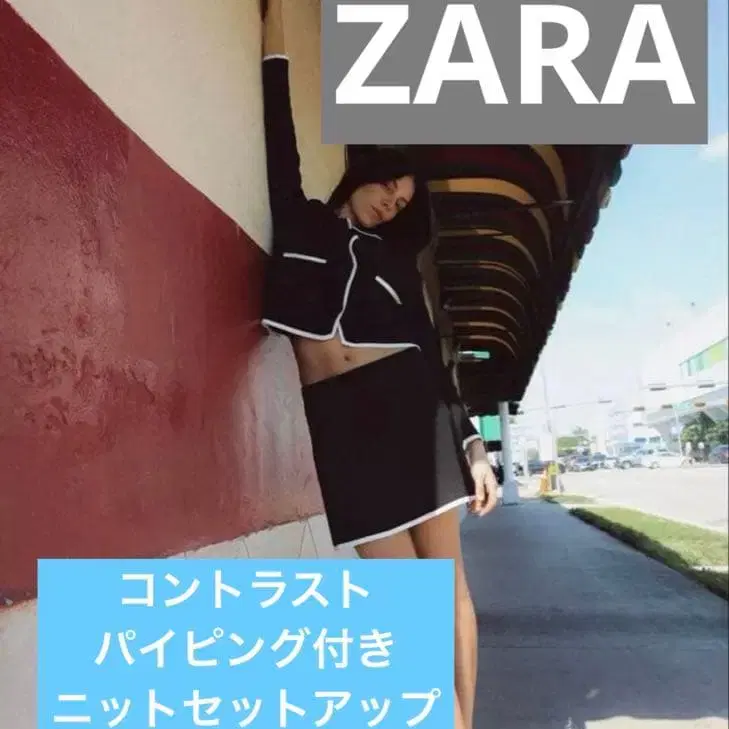 ZARA/대비 파이핑 니트 셋업/미니 스커트