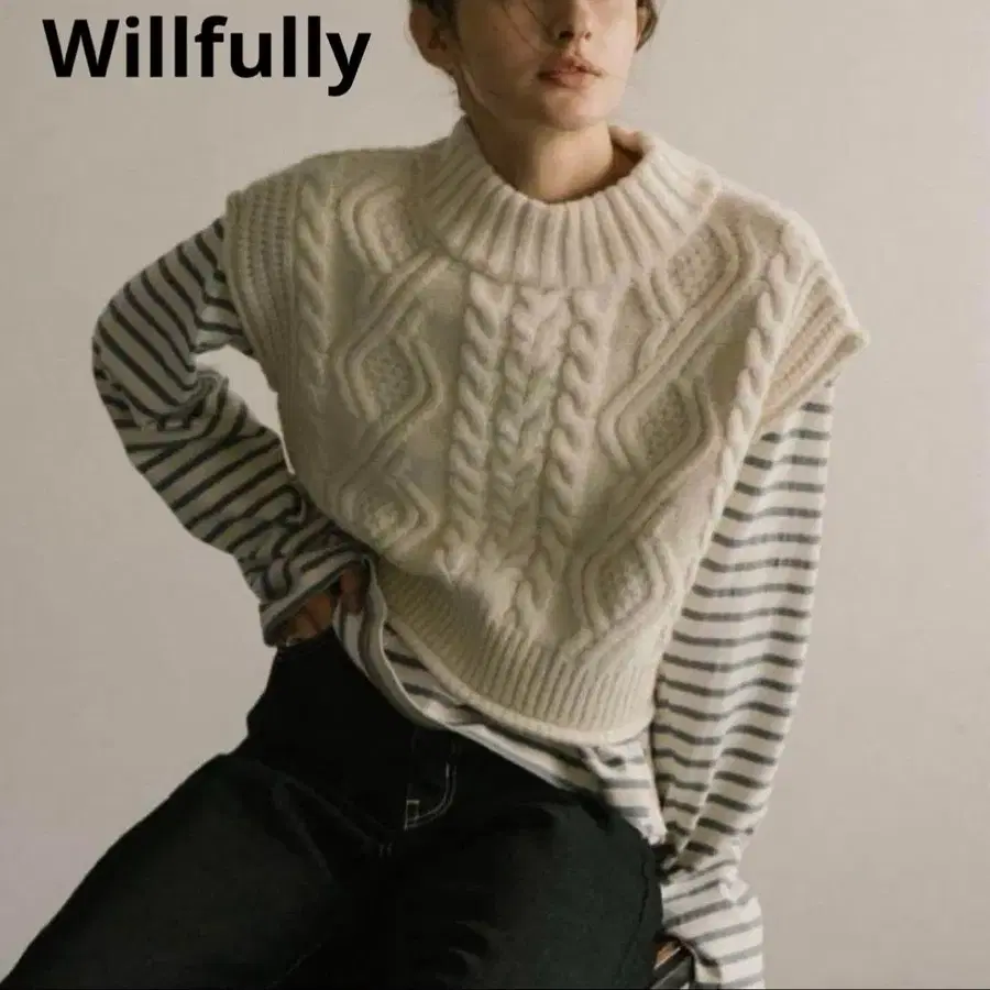 프리 웨이 후면 버튼 케이블 니트 베스트 흰색 화이트
