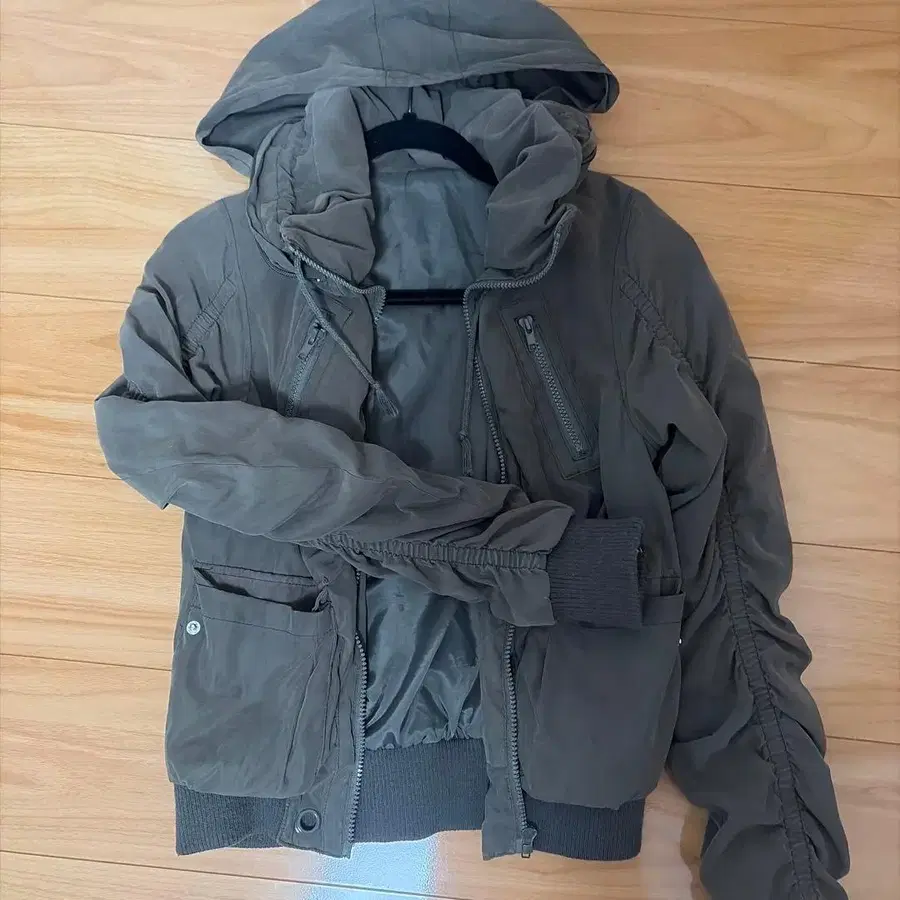카키 후드 부착 자켓