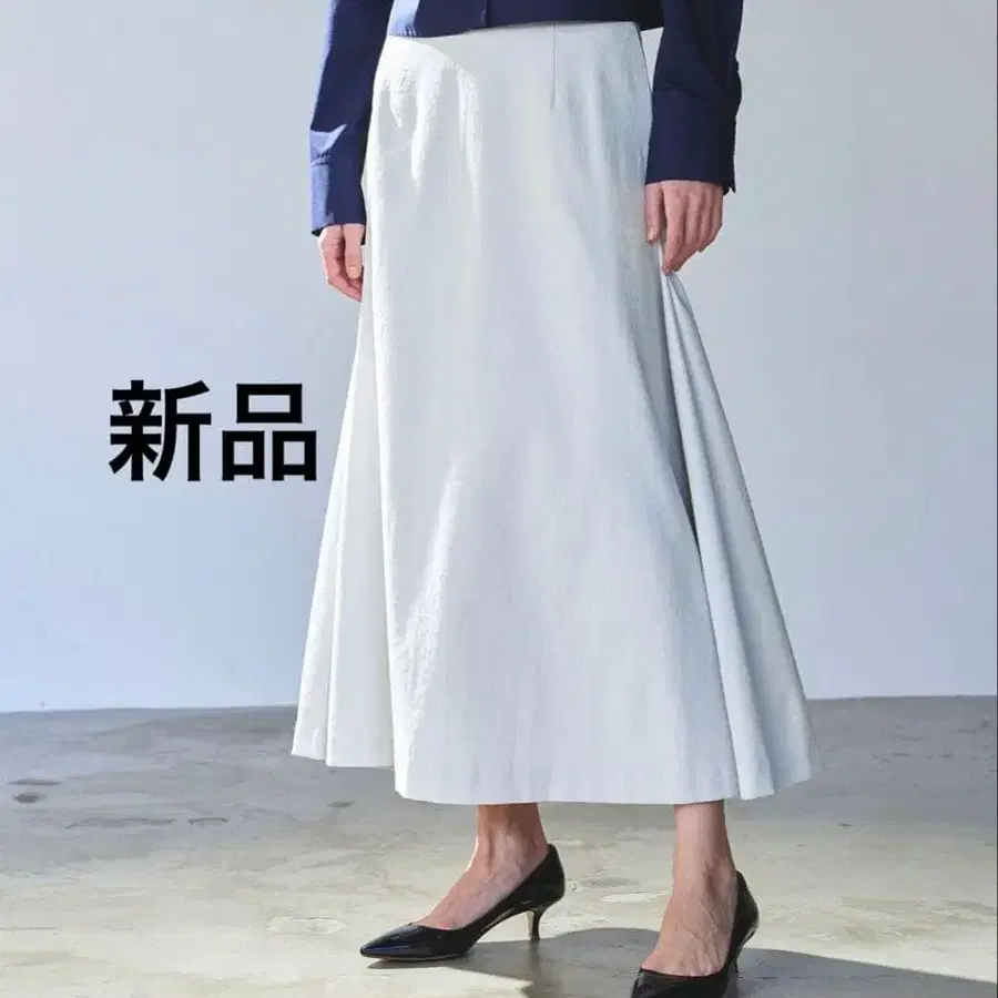 [새상품] 린넨 옥스 사이드 턱 플레어 스커트 화이트