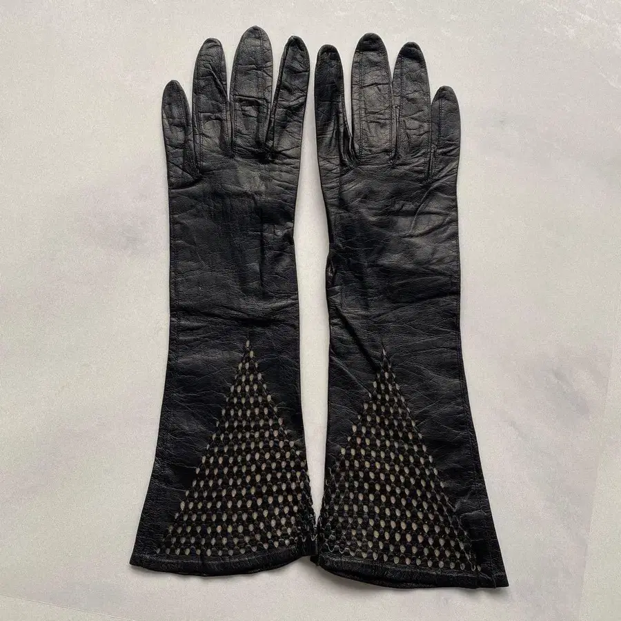 새상품급 여성용 가죽 롱 그로브 블랙 블랙 가죽 장갑 안감 없음 빈티지