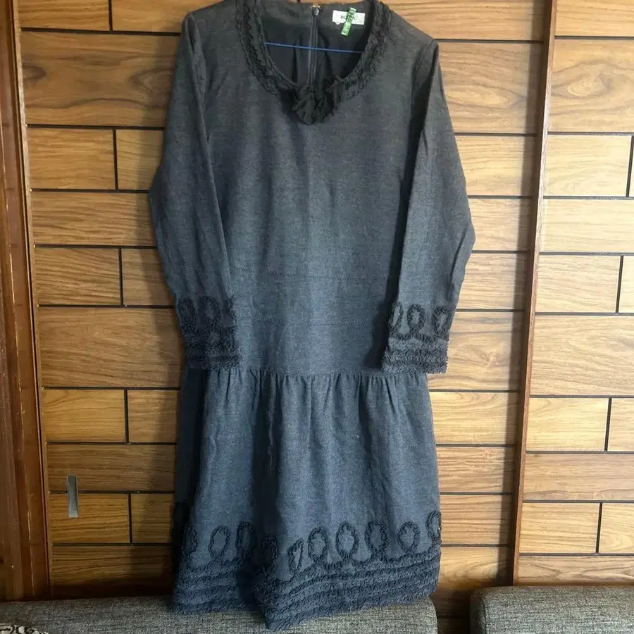 잉게보그 피코풀 리본 울 모직 차콜 그레이 프릴 원피스