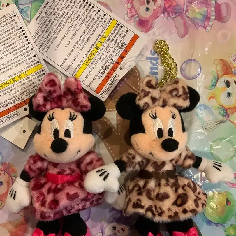 가격 인하 불가 미니 레오파드 무늬 핑크 브라운 봉제 인형 참 2개 세트