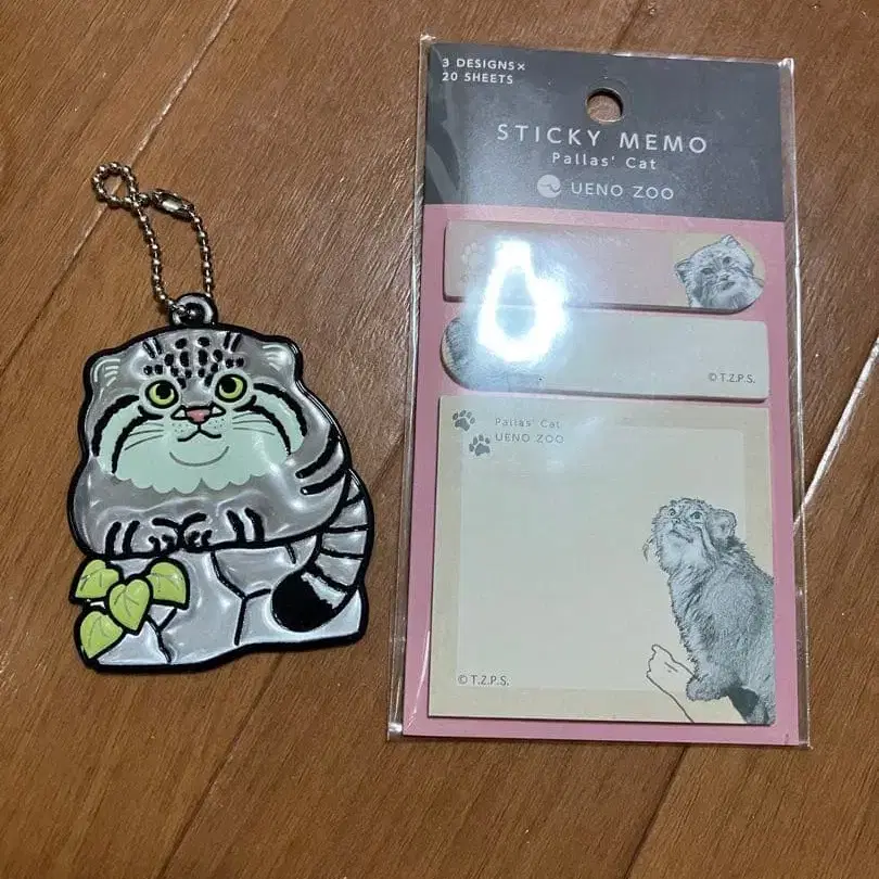 우에노 동물원 마눌 고양이 키링과 메모지 세트