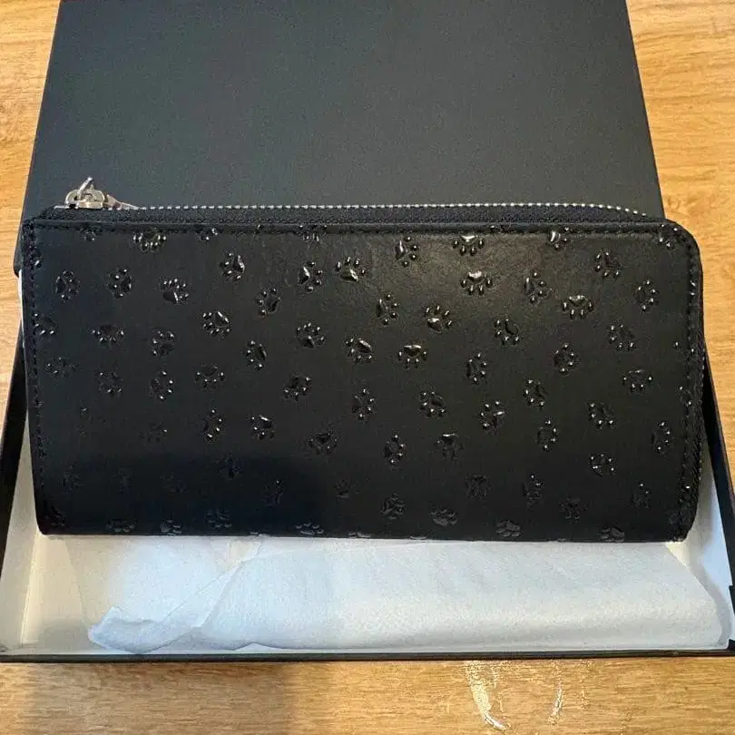 인덴 L자형 지퍼 장지갑 블랙 발바닥 강아지 고양이