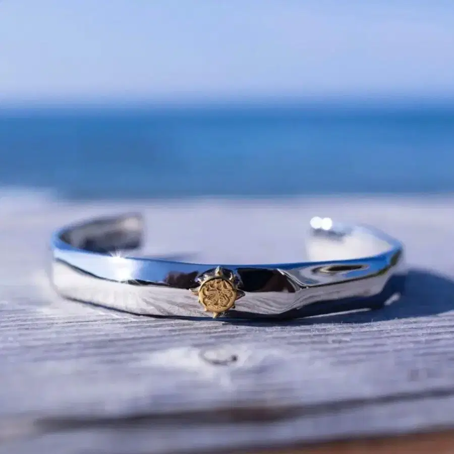 IRIEBEACH 실버 태양 모티브 뱅글 여성용 남성용 세트