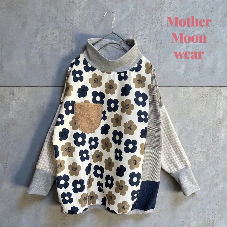 핸드메이드handmade 꽃 코튼 하이넥 풀오버