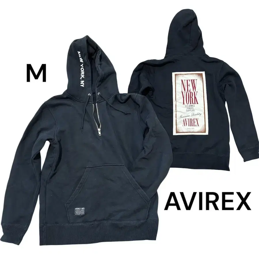 AVIREX 하프 지퍼 블랙 후드티 M 사이즈