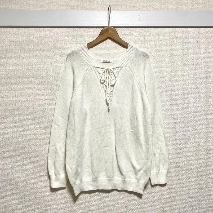 듀렐 레이스업 디자인 니트 풀오버 화이트 루즈핏 리본