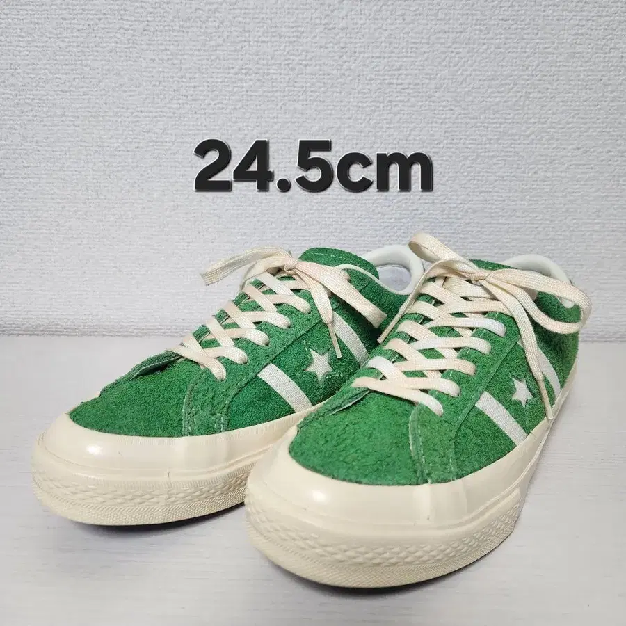 착용 횟수는 몇 회입니다. 밑창에 약간의 얼룩이 있지만, 전체적으로 깨끗한 상태이며 밑창의 마모도 없다고 생각합니다. 밑창이나 슈레이스가 누렇게 변색된 것은 원래의 디자인입니다. 중고품이라는 점을 양해 부탁드립니다. #기타 컨버스 스니커즈는 이쪽 공식 스토어 인용 ▼ 스타&바즈의 [ U.S. ORIGINATOR ] 스펙 탑재 모델. 어퍼에는 털이 긴 스웨이드 소재를 채용. 얼룩이 있는 슈레이스, 광택 가공을 한 아이보리색 테이프를 맞춰, 데드스탁과 같은 분위기로 완성한 한 켤레. 아카이브에 있을 법한 선명한 라이트 그린과 화이트/그레이의 2가지 컬러 전개. U.S. ORIGINATOR SPEC 시간이 지나 노후화된 듯한 질감과 색을 연출하는 광택 가공을 한 테이프 장시간 보관했던 듯한 얼룩이 있는 색을 프린트한 6mm 폭 슈레이스 [ U.S. ORIGINATOR ] 프린트가 들어간 힐 라벨과 인솔 로고 쿠션성이 뛰어난 고밀도 우레탄 폼과 러버 스펀지의 인솔 방문해 주셔서 감사합니다.