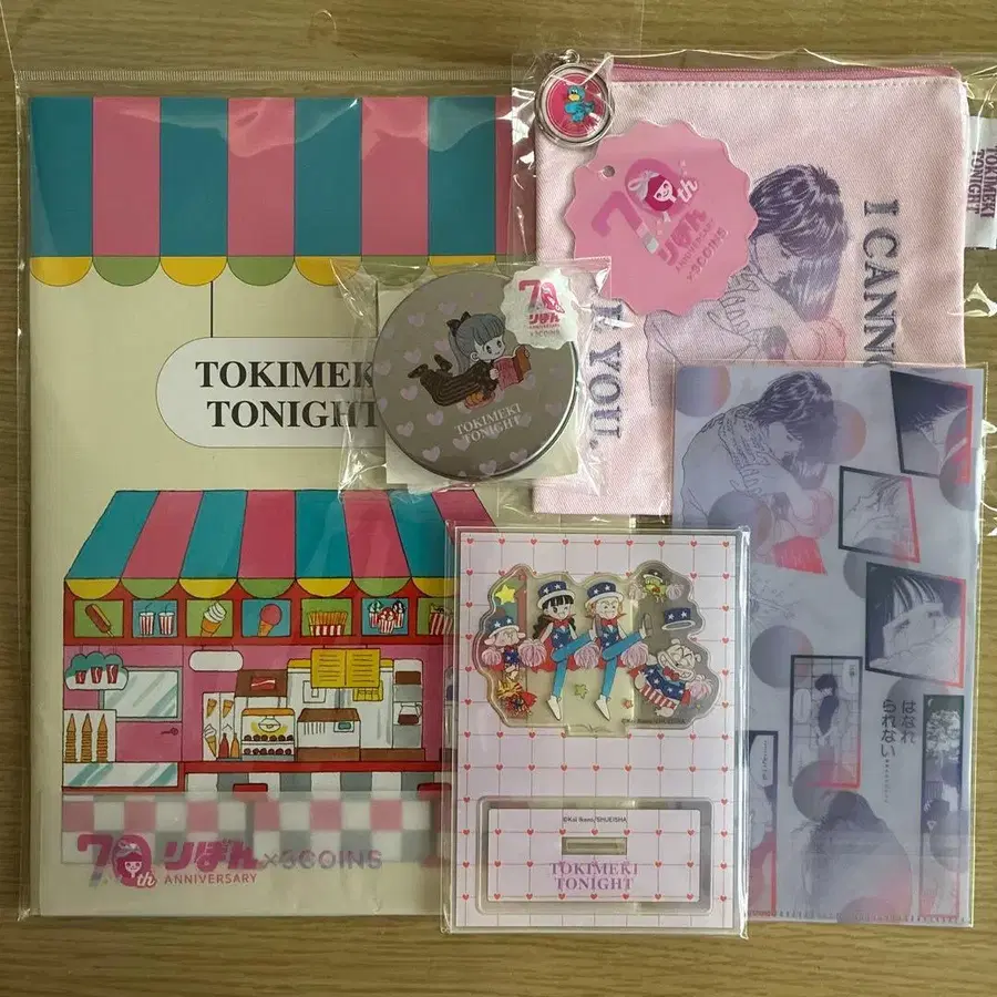 도키메키 나이트 리본 70주년 스티커 파우치 아크릴 스탠드 3coins