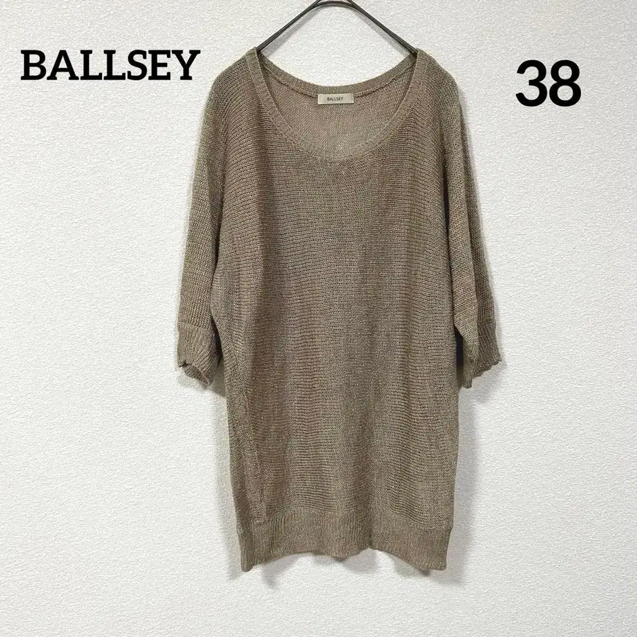 BALLSEY 마 혼방 베이지 니트 긴팔 마 슬리브 니트 라메 믹스