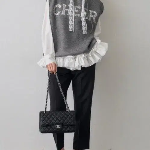 새상품 레이스 리본 로고 후드 슬리브리스 니트 그레이 frene