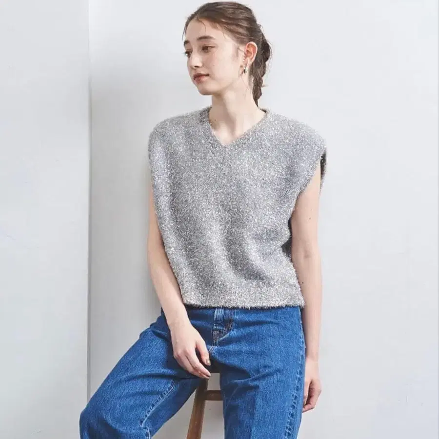 [ 미사용 ] 유나이티드 애로우즈 글리터 라메 슬리브리스 니트 베스트