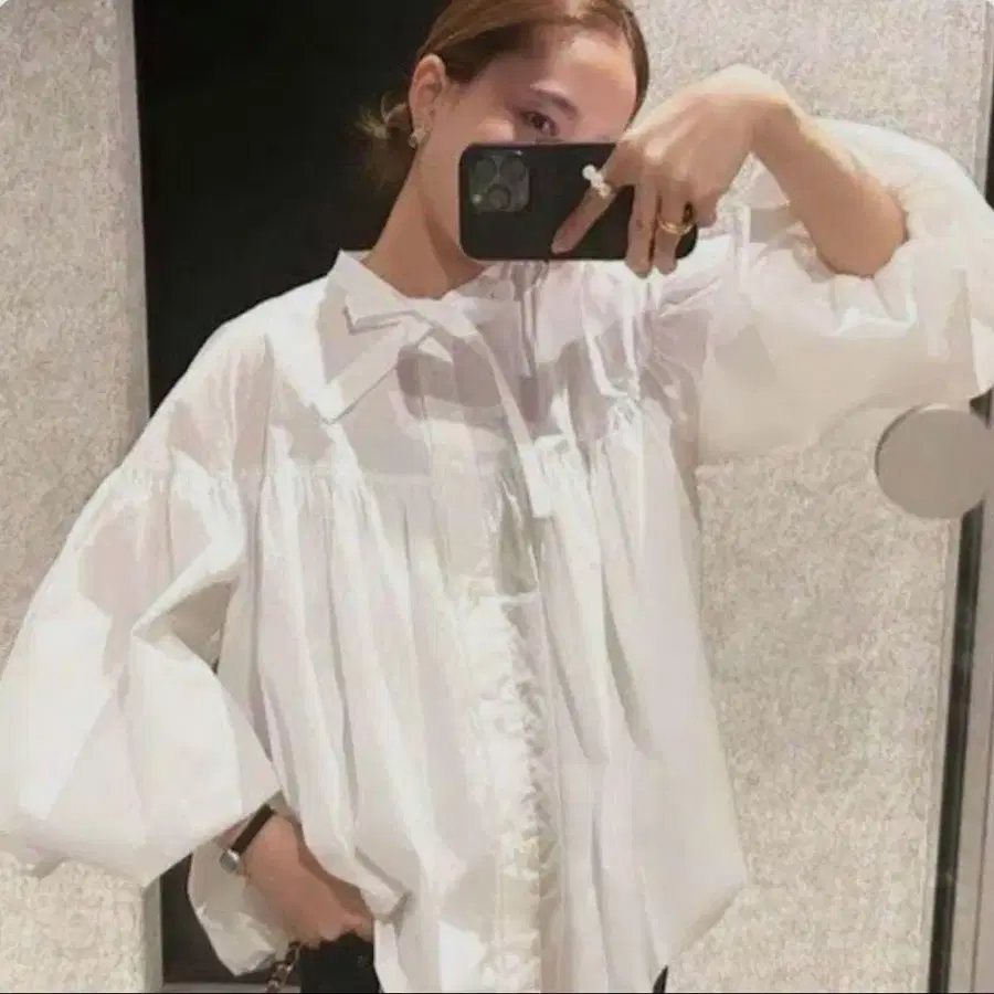 요리 볼륨 개더 블라우스 셔츠 리본