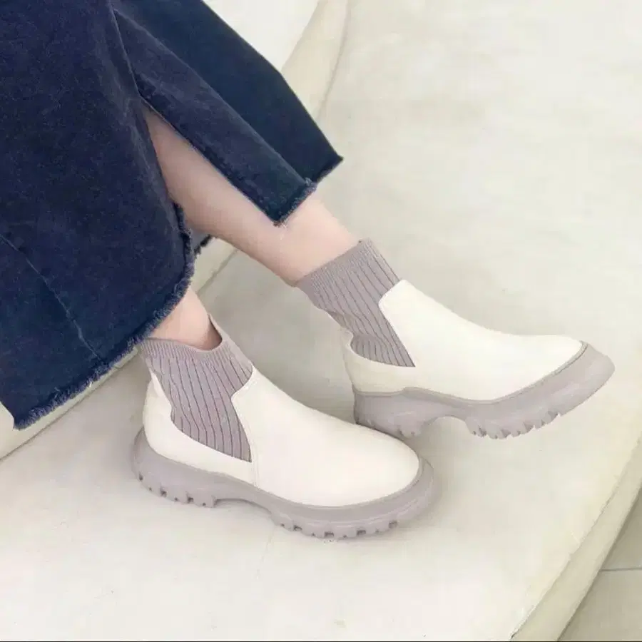 [새상품급] 오리엔탈 트래픽 트랙 밑창 리브 니트 부츠 화이트 S