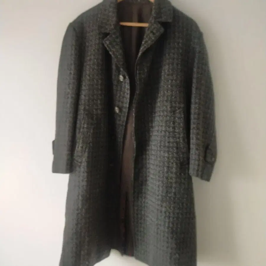 레트로 트위드 그레이 스텐카라 코트 울 혼방