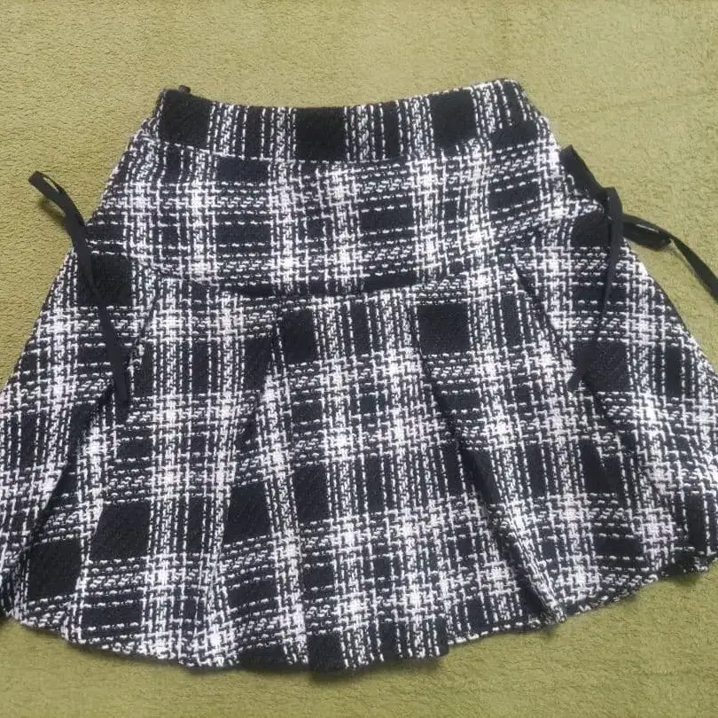 올리브 데 올리브 플리츠 스커트 블랙 앤 화이트 체크 무늬