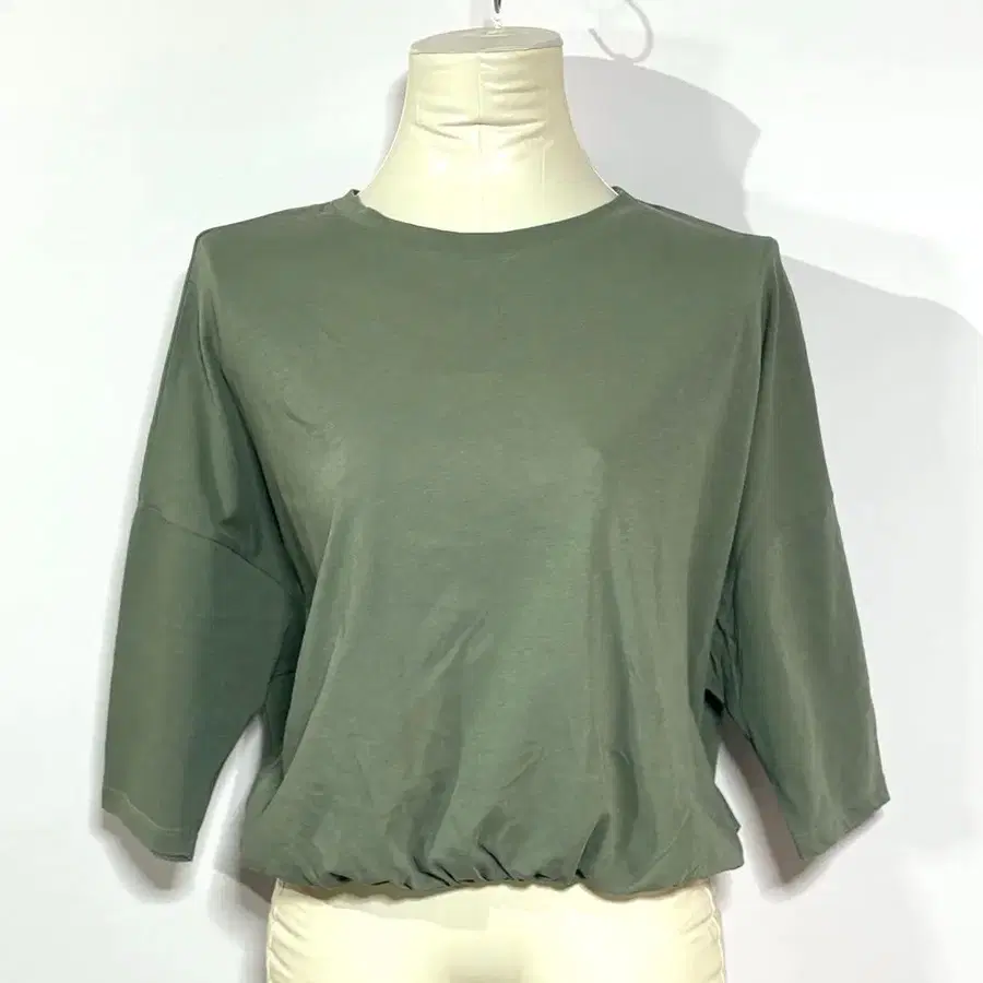그린 레이블 릴랙싱 밑단 개더 탁한 그린 티셔츠