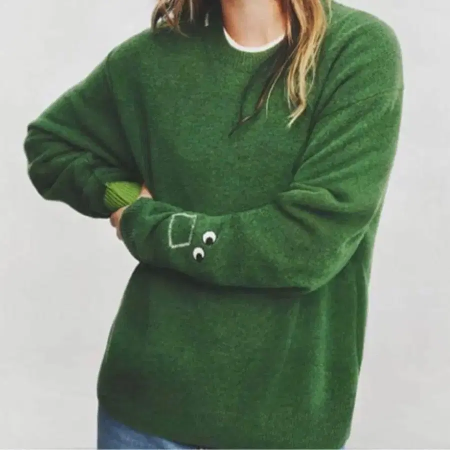 유니클로 아냐 프리미엄 라무 크루넥 스웨터 그린 L